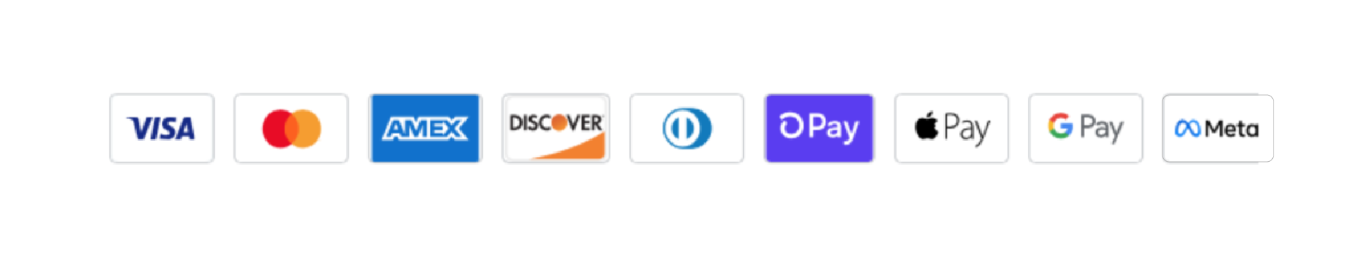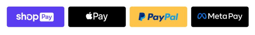 Accepts all major credit cards (Visa, Master Card, American Express, Discover, Dinners Club), as well as Express Checkouts such as Shop Pay, PayPal, Google Pay, and MetaPay.